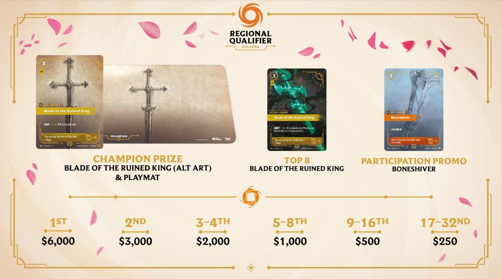 Plus de 1 600 joueurs au Regional Qualifier Riftbound de Bologne. Prize pool de 25 000 $, qualification aux Worlds, Best-Of Legends et infos pratiques.
