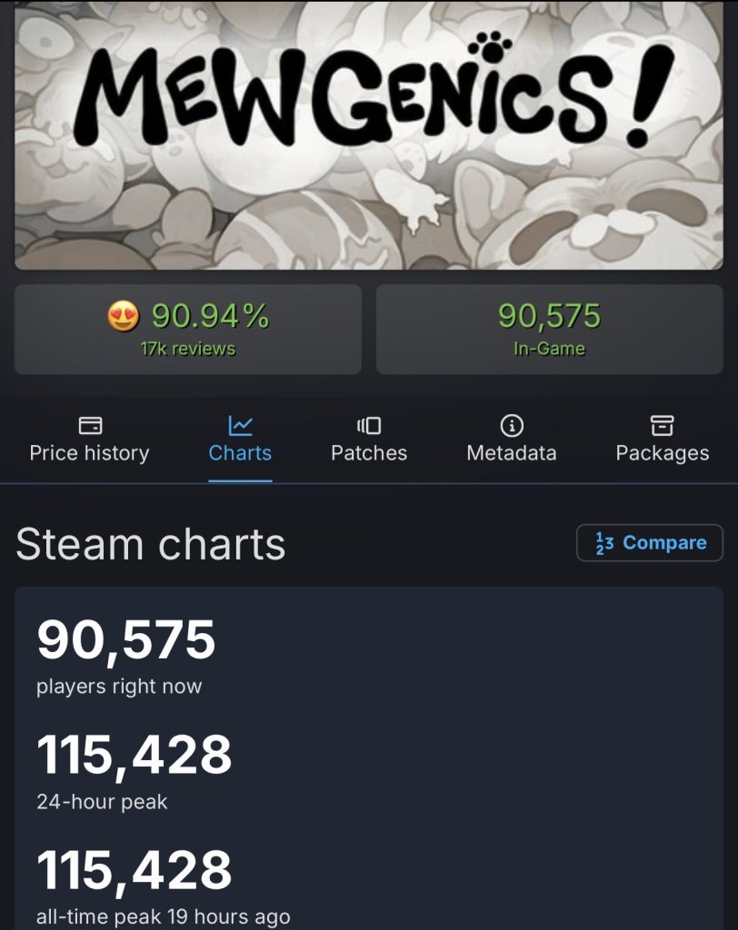 Le 15 février, Mewgenics a atteint un pic de 115 428 joueurs simultanés. Ce chiffre dépasse officiellement le record précédent détenu par Hades II, qui avait culminé à 112 947 joueurs en septembre 2025.