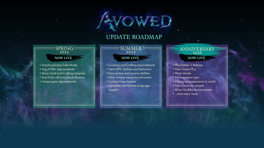En plus de cette mise à jour anniversaire, Avowed est désormais disponible sur PS5 avec l’ensemble des améliorations déployées durant l’année écoulée.