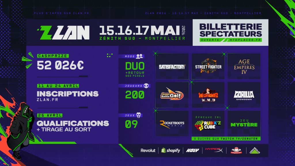 C’est officiel : la ZLAN 2026 est de retour ! Organisée par ZeratoR et ZQSD Productions, cette nouvelle édition s’annonce déjà comme l’un des événements eSport les plus attendus de l’année.