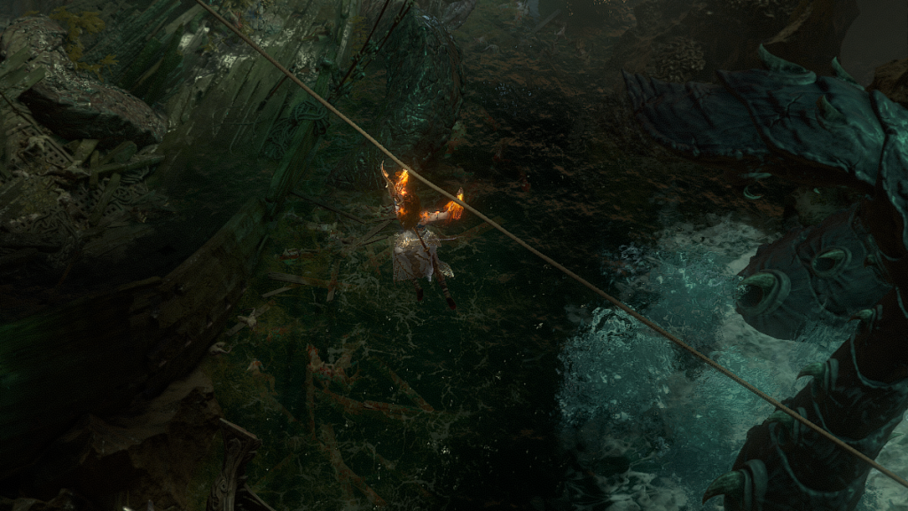 Puisque les zones sont inédites et loin des lieux que l’on connaît déjà, les environnements y sont très différents du reste de Sanctuaire et rappellent en de multiples points la Grèce antique. On s’est même souvent surpris à avoir l’impression de jouer à Titan Quest II, et c’était sympathique ! Le bestiaire suit cette même logique avec tout un tas de nouvelles créatures faisant écho à l’environnement insulaire de Skovos, bien au-delà des démons que l’on a l’habitude de voir : crabes, élémentaires d’eau, serpents de mer, pirates, hydres… il y en a pour tous les goûts, mais surtout les fans de bestioles venues des profondeurs !