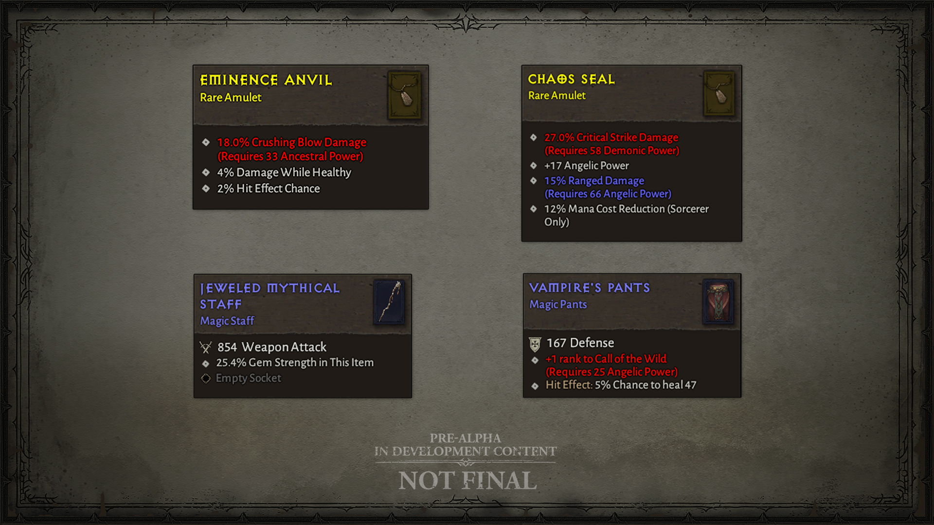 Blizzard n’a pas énormément donné d’informations au sujet des objets dans Diablo 4. Les développeurs ont toutefois pu tester les premiers objets et la progression des personnages pour y apporter