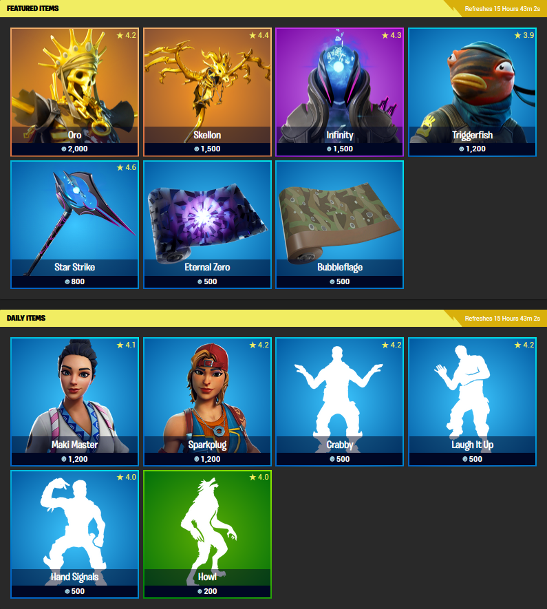 Fortnite, Boutique, Shop, Skins, Skin, Boutique du jour, Planeur, Danse, Emote, Infos, Photos.