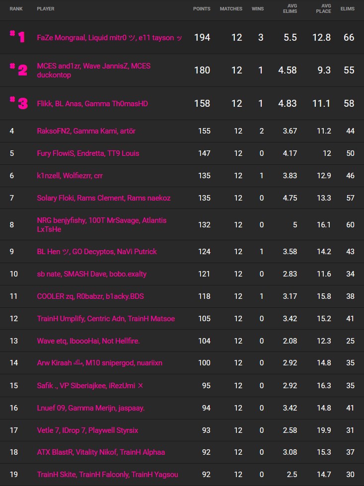 Finale FNCS Fortnite en trio, classement, résultats et format de la compétition