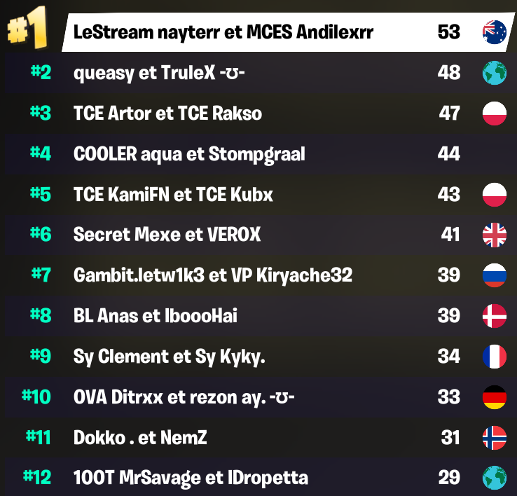 FNCS, Fortnite, Finale, FNCS, Points, FR, Duo, Résultat, Classements, Infos, Tournoi, Compétition, Stream.