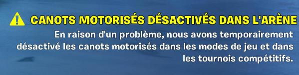 Si vous jouez en Arène et que vous cherchez à utiliser un Canot motorisé, ce ne sera pas possible pour le moment ! En effet, suite à un problème, les Canots sont désactivés dans le mode Arène,