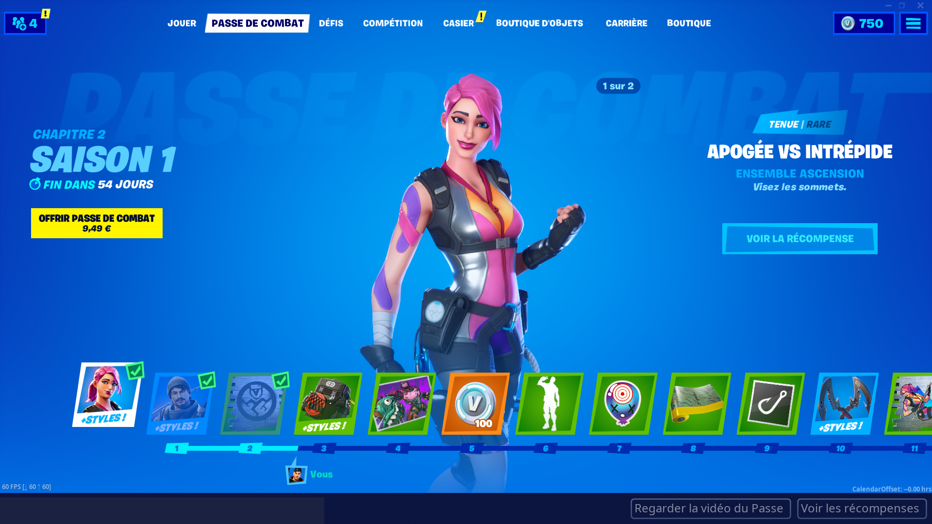 Pour ce nouveau chapitre, le fonctionnement du passe de combat a été modifié. Il ne fonctionne plus avec des paliers, mais avec des niveaux qu’il faut atteindre en gagnant de