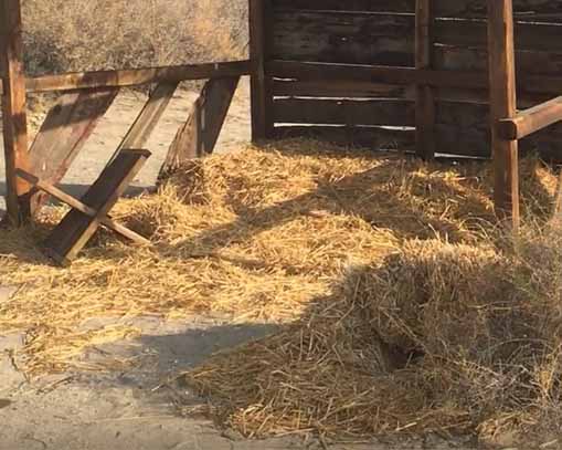Paille et traces d’un véhicule… serait-ce un caddie ?