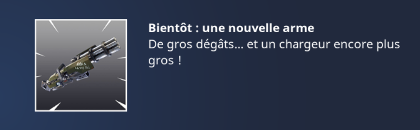 En effet, une première image de la nouvelle arme a été présentée aux joueurs avec l’information suivante : « de gros dégâts… et un chargeur encore plus gros ! ». Reste à savoir comment