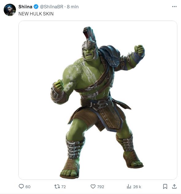 - Un nouveau skin Hulk, là encore l’apparence de Gladiateur dans Thor Ragnarok