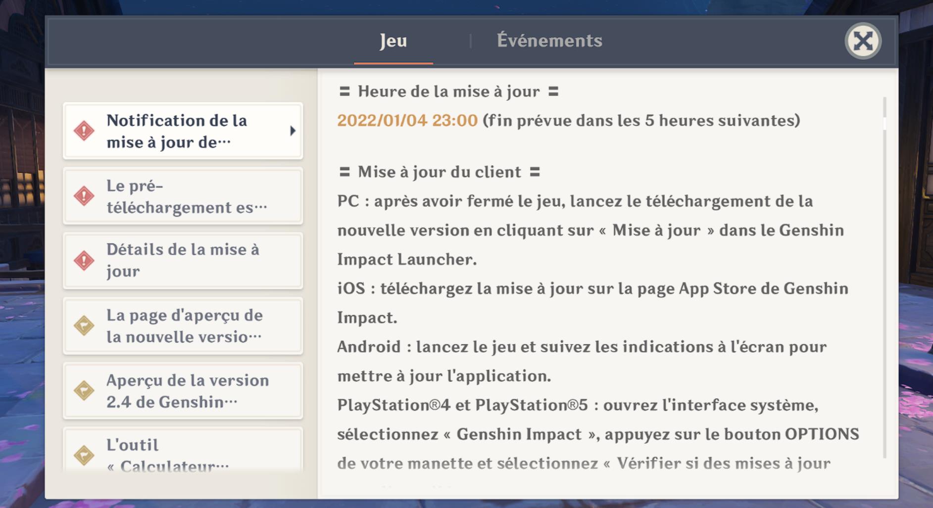 Genshin Impact, patch, 2.4, mise à jour, heure, sortie, quand, sort, infos, 23 h, 4 janvier, 5 janvier, 4 h, 5 h