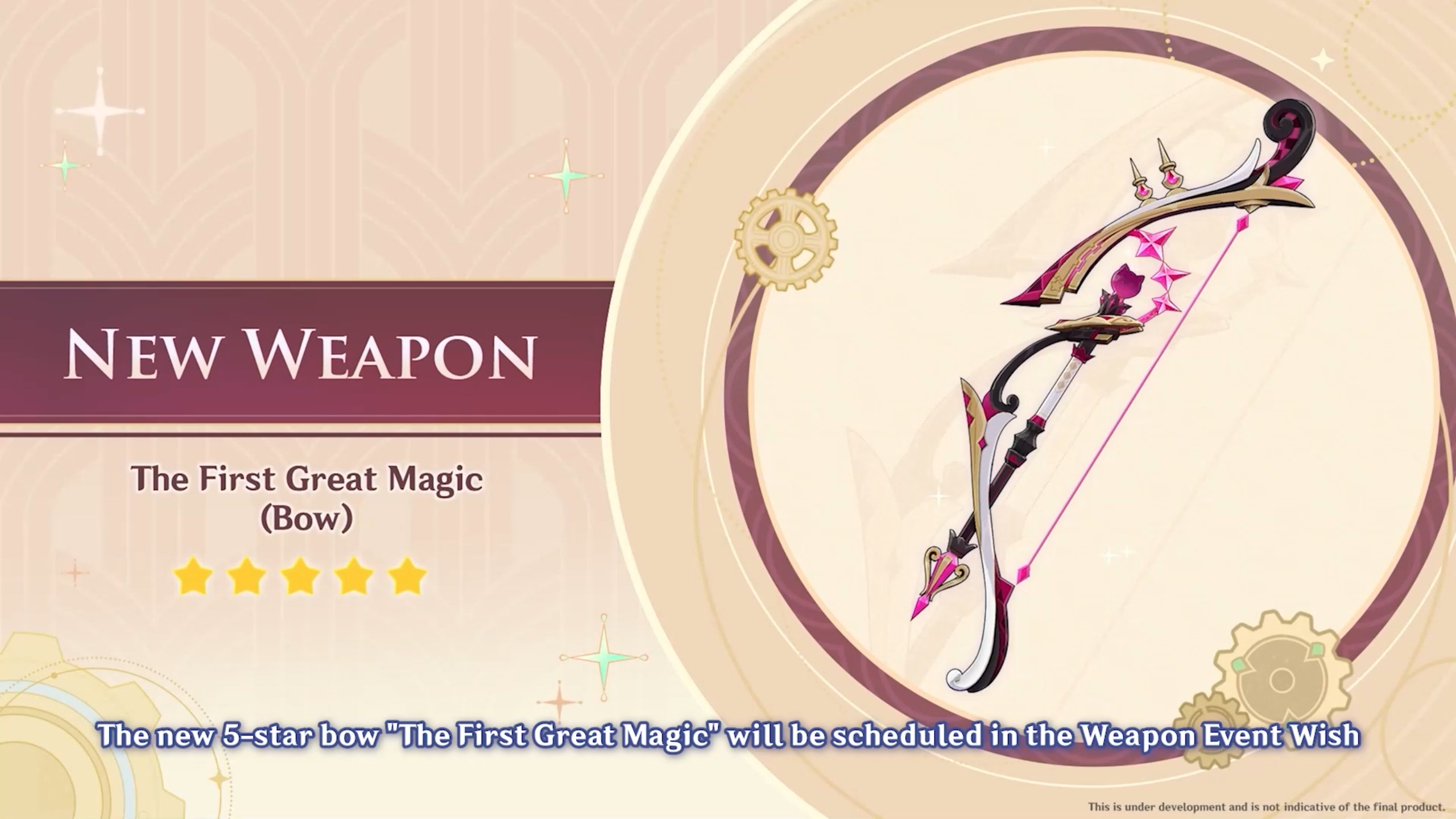 L’apparence du nouvel arc 5 étoiles prochainement récupérables dans Genshin Impact – source : miHoYo