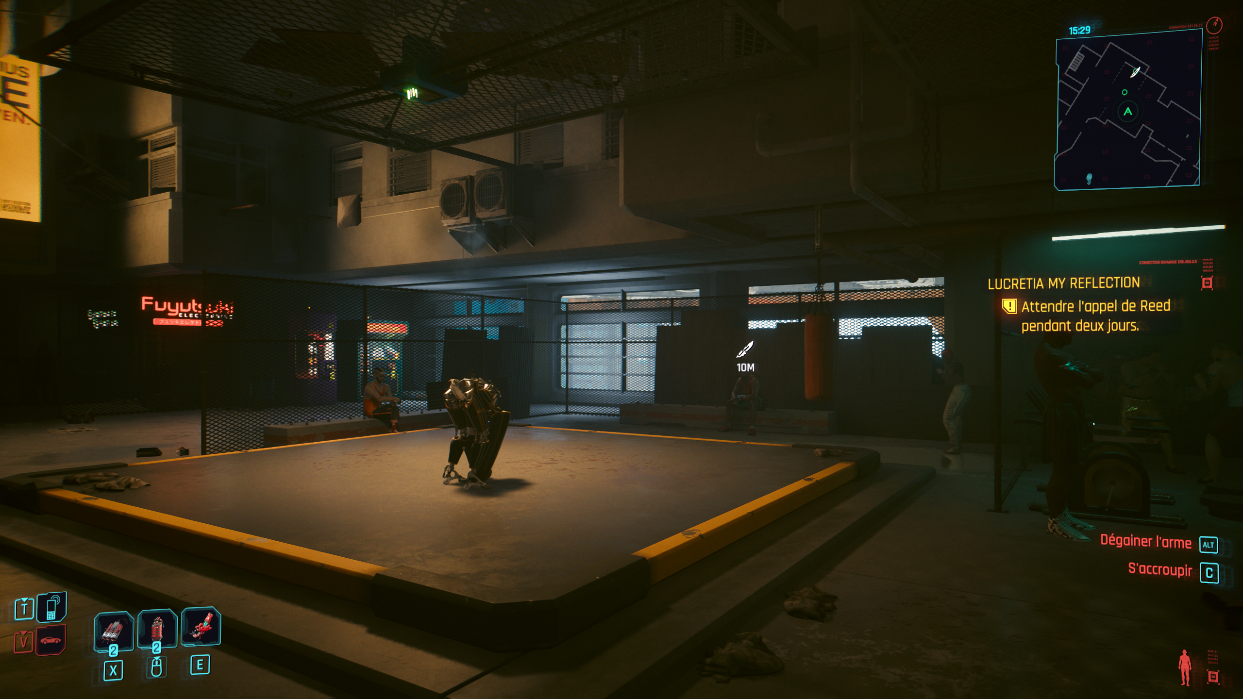 Pour commencer la quête, vous devrez aller voir Coach Fred qui est juste à côté de l’appartement de V. Prenez le téléporteur Atrium – Megabuilding