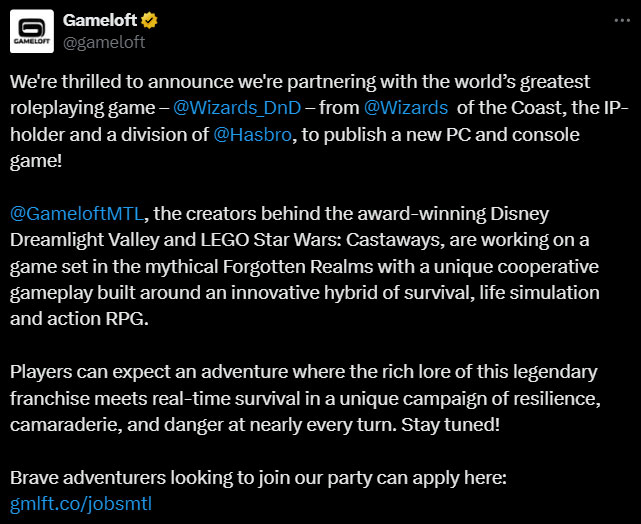 Dungeons & Dragons : Un nouveau jeu de survie et de simulation de vie en développement chez Gameloft