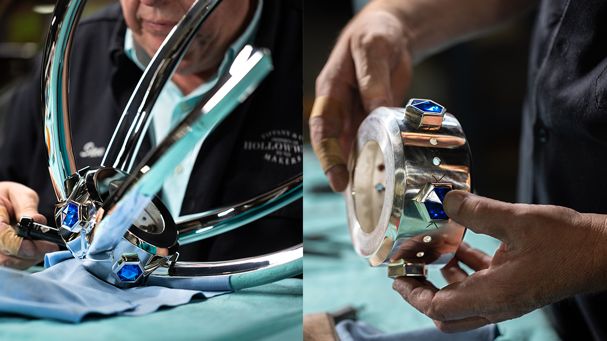 Concernant la coupe, il s’agit d’une co-création qui pèse 20 kg et mesure environ 70 cm. Elle a demandé quatre mois et 277 heures de travail de la part des artisans d’art de la Maison. Des outils