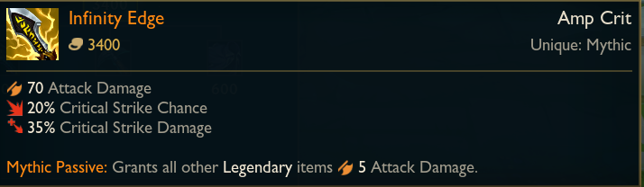- Passif mythique : +5 AD pour tous les autres objets légendaires.