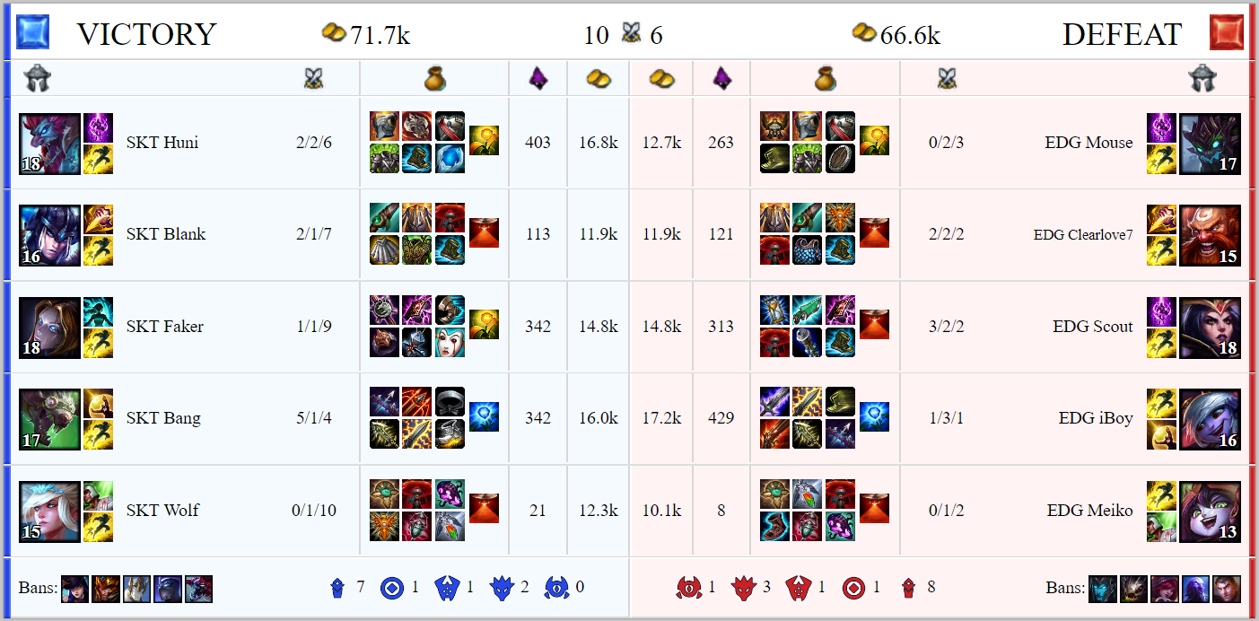 → Côté SKT Peanut a été outplay tout au long de la partie, Huni inutile et le placement de Bang a grandement laissé à