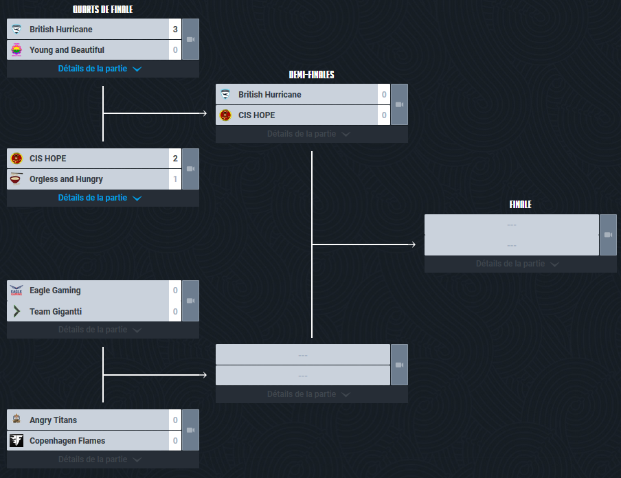 | 12h00 | British Hurricane | 3 – 1 | CIS Hope | ||