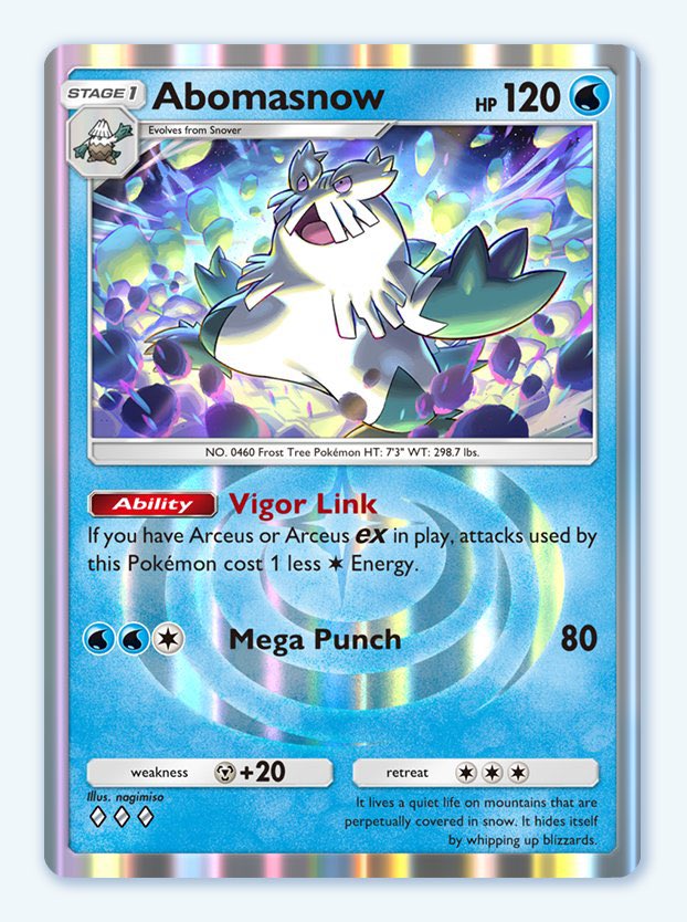 Vigor Link : Si Arceus ex est en jeu, les attaques de Blizzaroi coûtent 1 énergie de moins, ce qui accélère considérablement le jeu et permet de frapper rapidement et efficacement.