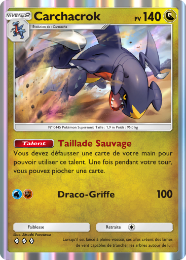 Carchacrok est une évolution de niveau 2, c’est donc une carte lente à mettre en place. La bonne nouvelle, c’est que vous n’avez besoin que de deux énergies pour attaquer.