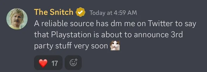 Selon le site Insider Gaming, The Snitch un utilisateur habitué des leaks aurait reçu un message privé sur Twitter d’une source lui révélant que PlayStation allait annoncer du