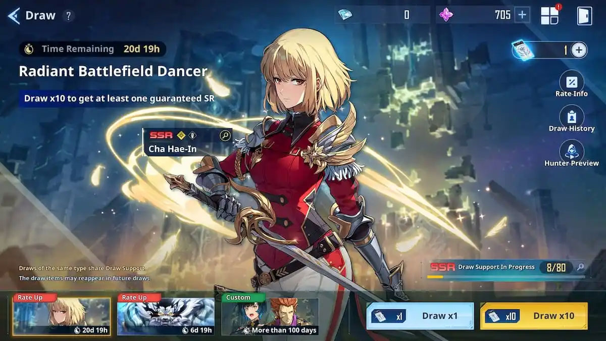 Actuellement, il y a deux bannières limitées dans le temps qui sont disponibles depuis le lancement officiel du jeu : Cha Hae In et Silver Mane Baek Yoonho. Il s’agit de deux personnages bien