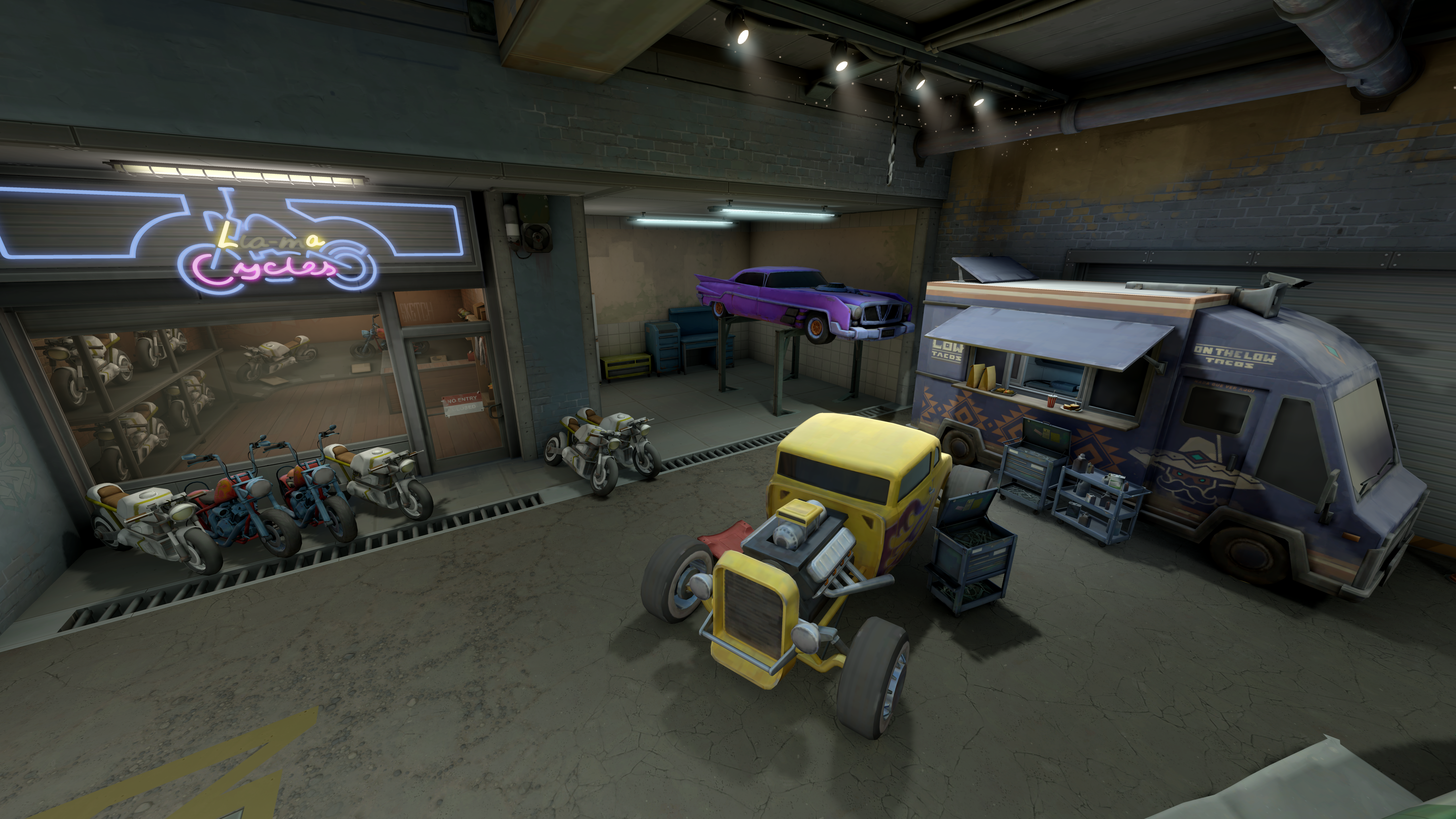 Baptisée Glitch, cette arène mélange deux thèmes opposés : une section Sunset, abandonnée et délabrée, et une partie Haven, recouverte
