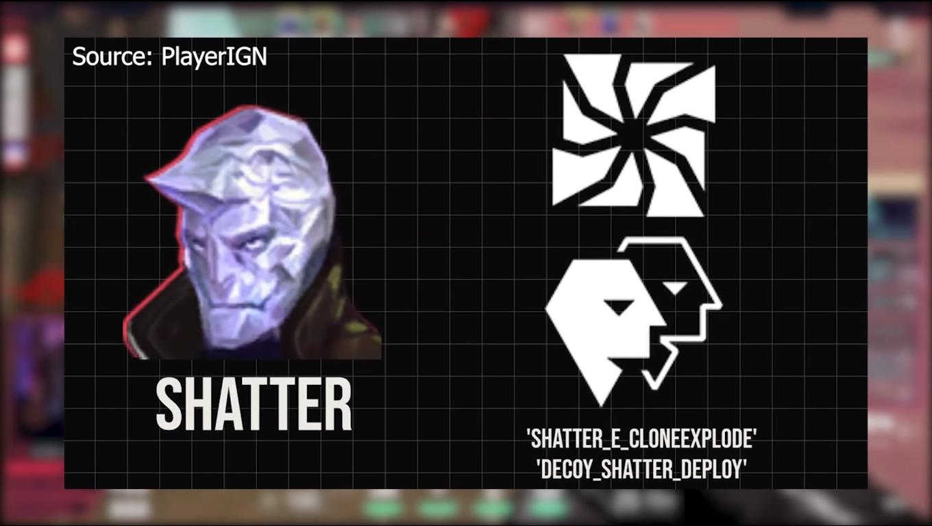 Grâce aux fichiers récupérés, on peut supposer que Shatter serait un Agent fait en grande partie de verre et disposerait donc de compétences en lien avec cet élément. Deux
