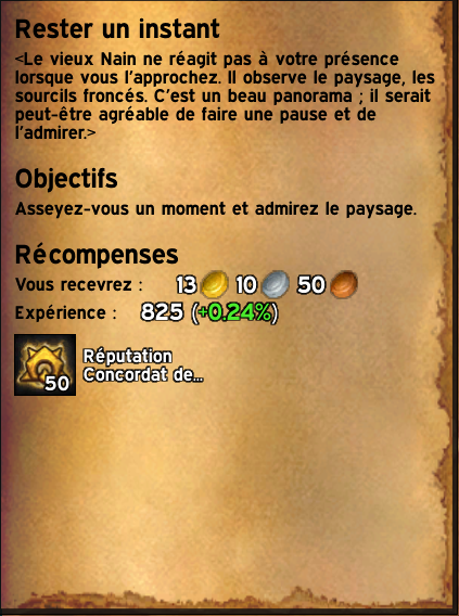 Il vous proposera une quête vous invitant à vous asseoir un moment et d’admirer le paysage.