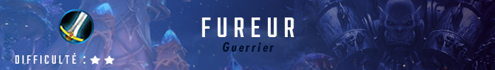 Le Guerrier Fureur est un DPS né dans le coeur de la bataille, dans le sang et les cris. Sacrifiant toute option défensive, il inflige d’importants dégâts à des cibles isolées ou à de grands