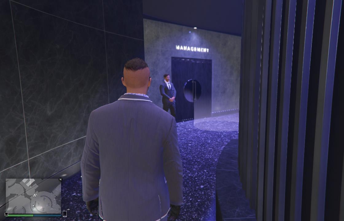 Rendez-vous donc ensuite dans la zone du Management, trouvable au dans la dernière salle du casino et passer dans le halo près du garde de sécurité pour lancer la première