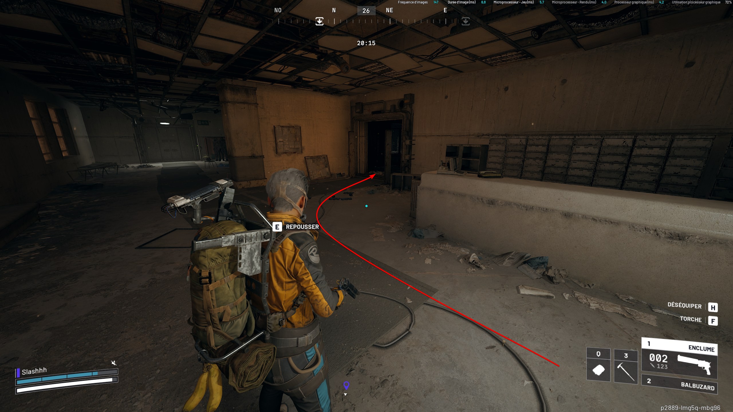 Une fois sur place, passez par l’entrée, mais attention, une caméra surveille la zone à l'extérieur. Si elle vous repère, elle fera du bruit et pourra alerter les robots de l’ARC à proximité, tout en donnant une information précieuse aux joueurs embusqués dans les environs.