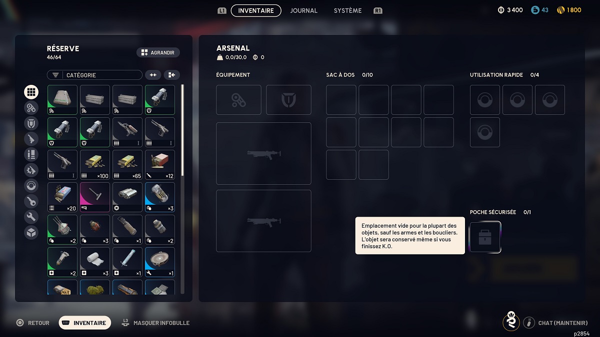 Toutefois, il est important de noter qu'ici, avec l'arsenal gratuit, vous ne disposez pas de la poche sécurisée.