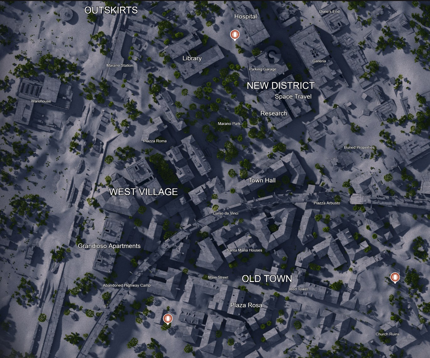 Emplacements des guetteurs à la Ville enfouie