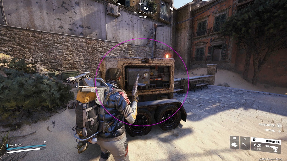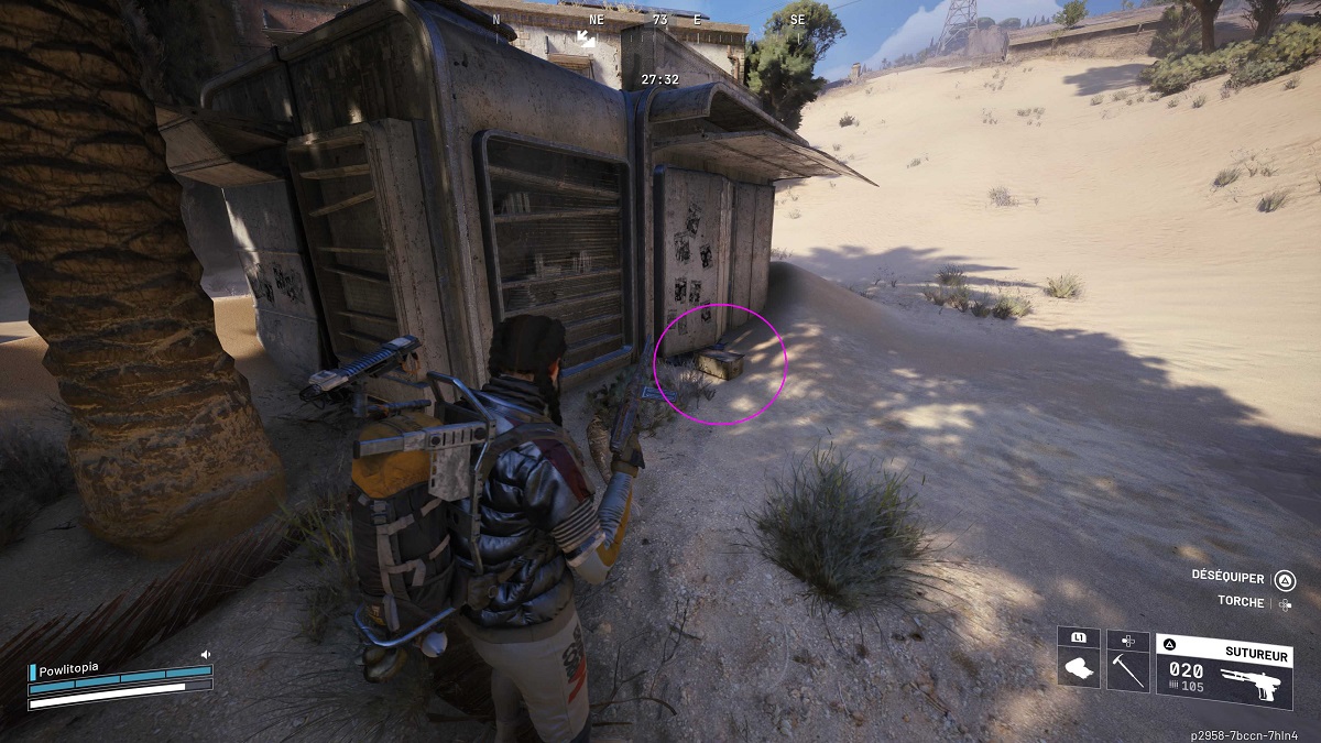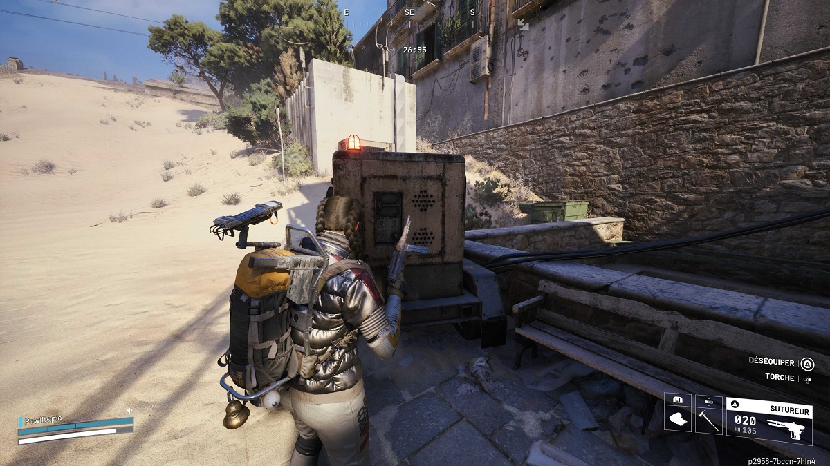 Pour la suite, il faut trouver la batterie manquante : pour cela, dirigez-vous vers le tout petit bâtiment fait de taules, et à ses pieds, se trouve donc une caisse avec laquelle il faut interagir. Une fois que c'est fait, le prochain objectif est naturellement de prendre la batterie et d'aller l'installer dans le générateur.
