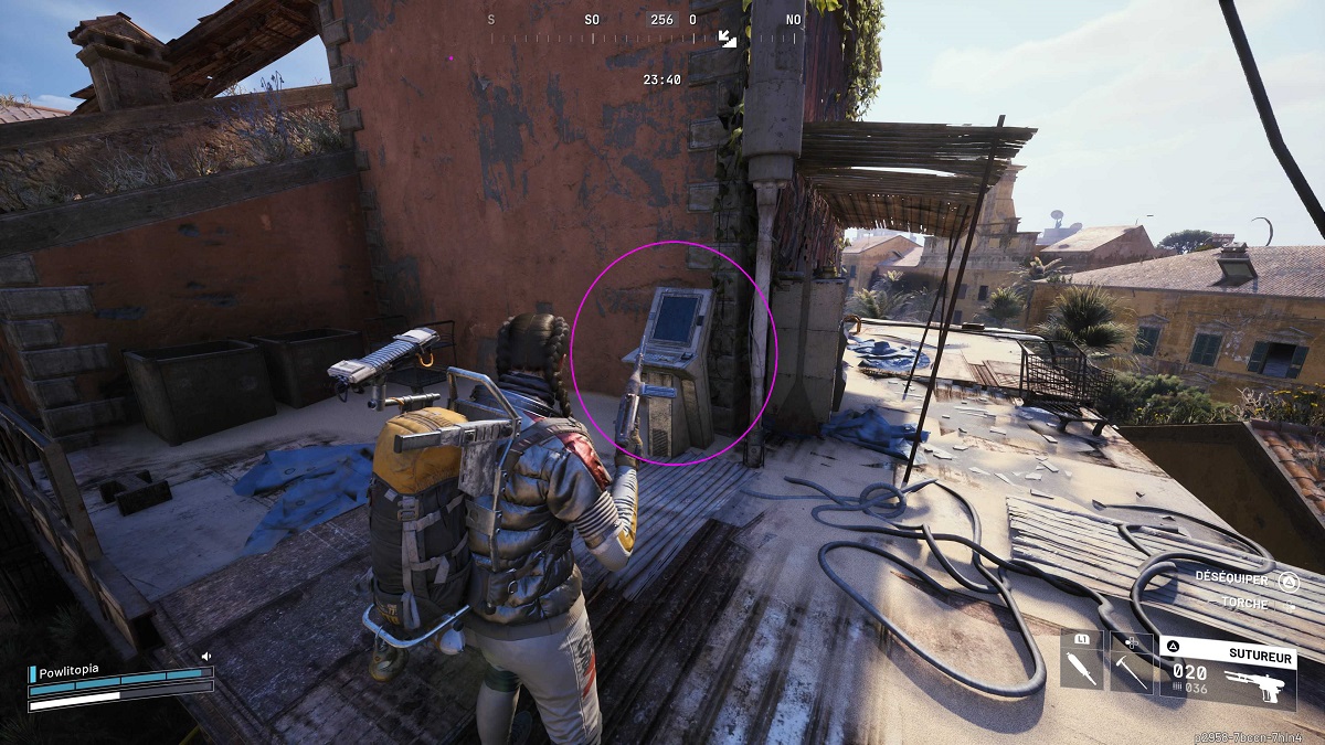 Maintenant, il va falloir activer le terminal d'antenne pour terminer la quête. Ce dernier se trouve au niveau d'une petite terrasse à cette fameuse tour. Pour y parvenir, entrez dans le bâtiment, empruntez les marches puis allez sur le balcon. Vous y verrez une échelle qui vous mènera au terminal : interagissez avec lui, et voilà, la mission est terminée !