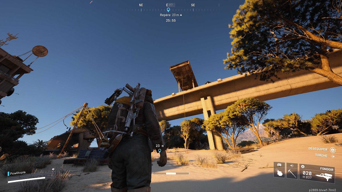 Mais quoi qu'il en soit, votre premier objectif sera de localiser le point de départ qui se situe au sud de la carte, et plus précisément au « camp d'autoroute abandonné ». Une fois sur place, vous verrez une tyrolienne : empruntez-là puis une fois en haut, partez sur la gauche.
