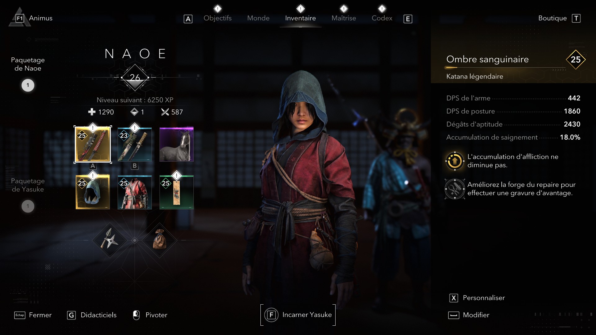 Une fois entre vos mains, Ombre Sanguinaire devient une arme exclusive à Naoe, lui offrant un