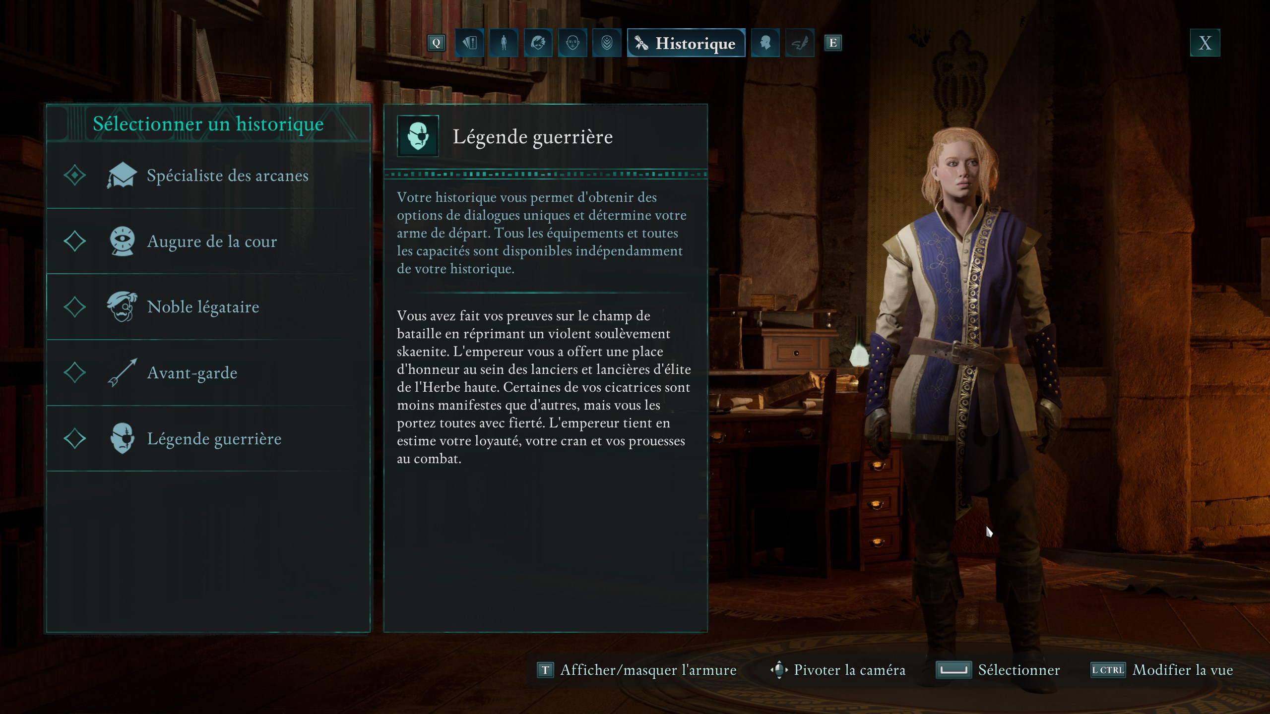 L’historique pour votre personnage est, comme son nom l’indique votre passé, c’est-à-dire, ce que votre héros a vécu jusqu’à arriver à son rôle d’émissaire pour l’Empereur afin d’enquêter sur le