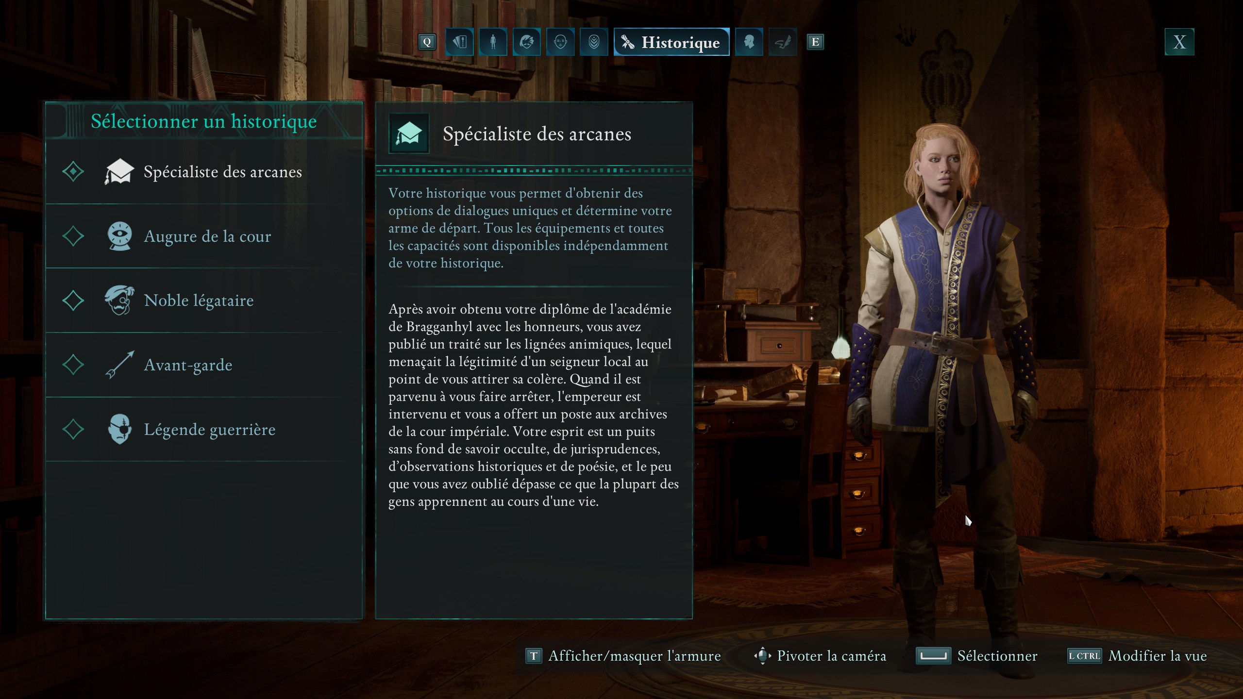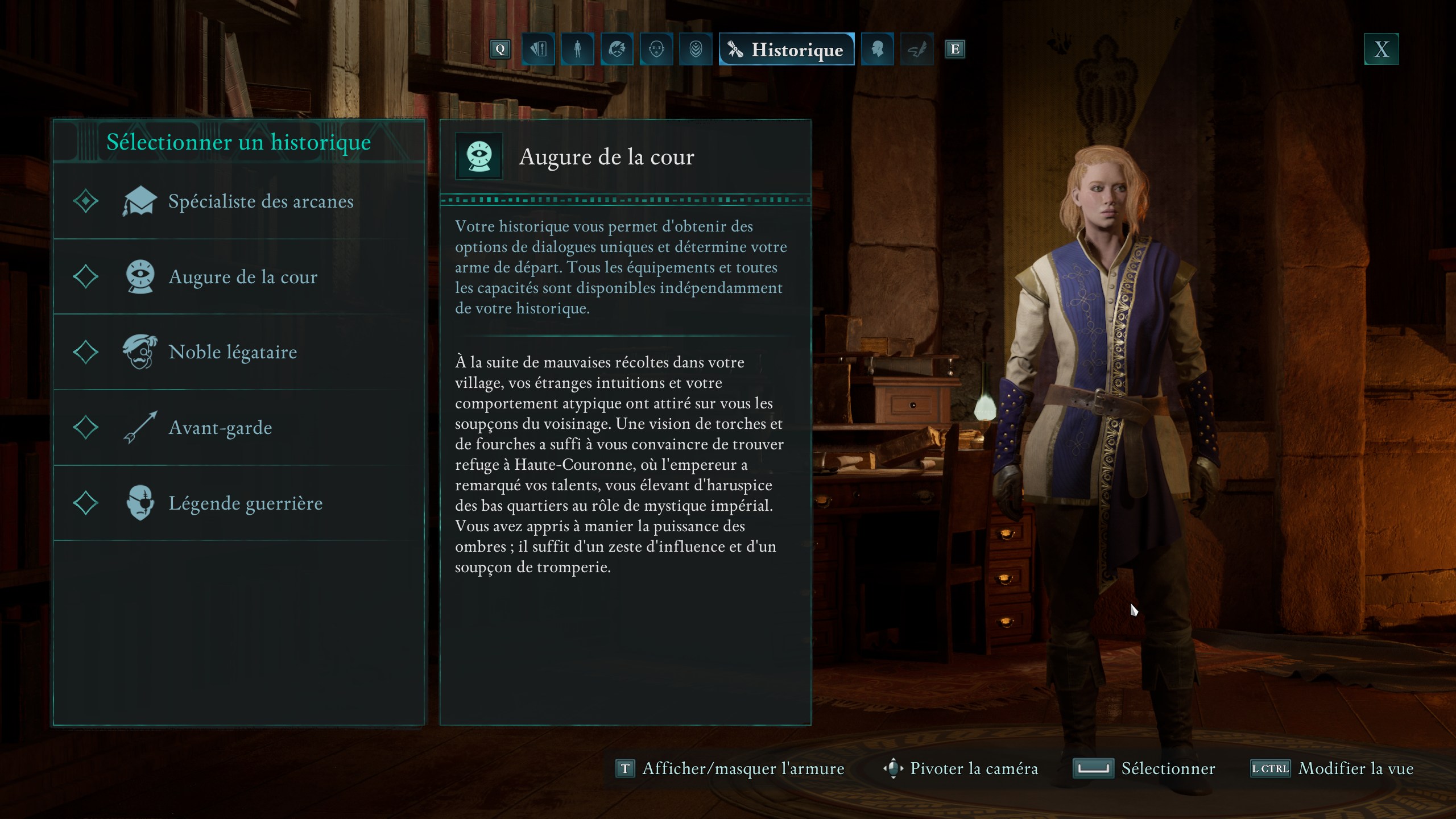 sélectionner un background qui aura son importance sur la suite du jeu. On vous indique ce que chaque archétype fait et quel est celui qui vous convient le mieux selon votre façon de jouer.