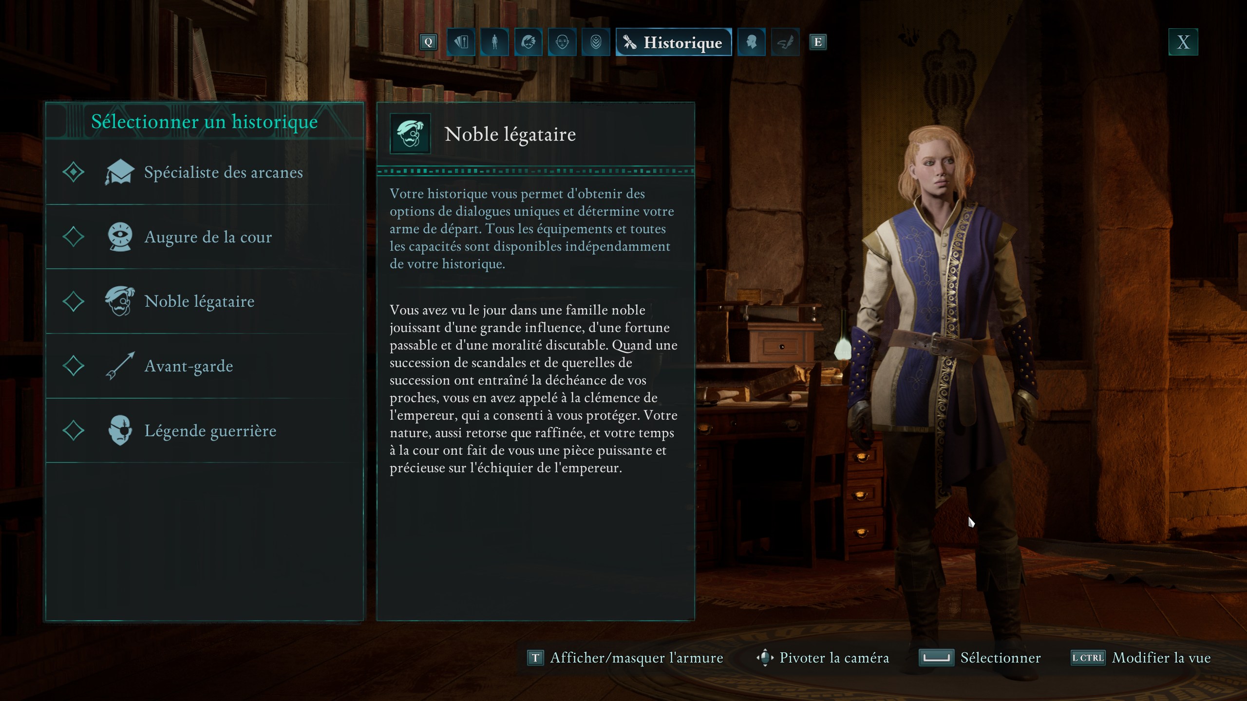Le Noble légataire vous donne des statistiques dans tous les domaines, mais vous allez avoir un peu plus en magie. Si vous souhaitez jouer un noble qui a un passé déchu et