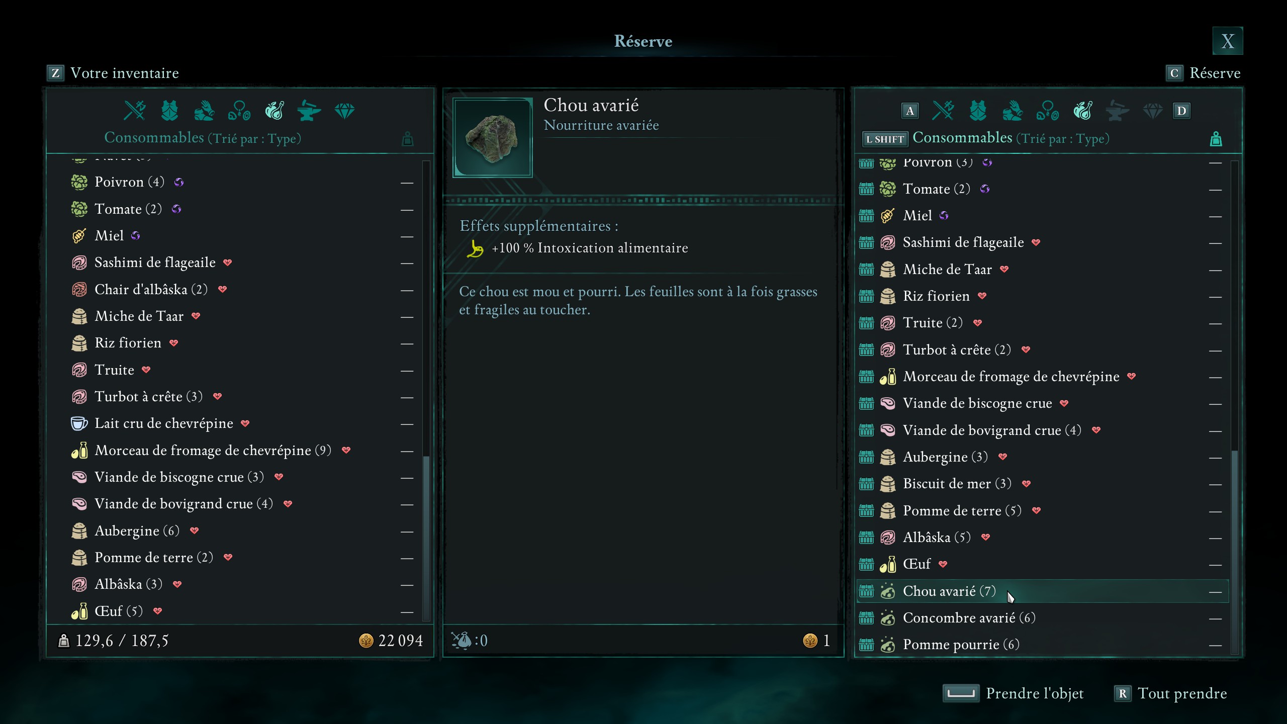 Si vous avez donc un aliment avarié, gardez-le sur vous pour préparer l’une de ces recettes, mais attention, si vous les placez dans votre coffre, vous allez devoir les récupérer pour les préparer