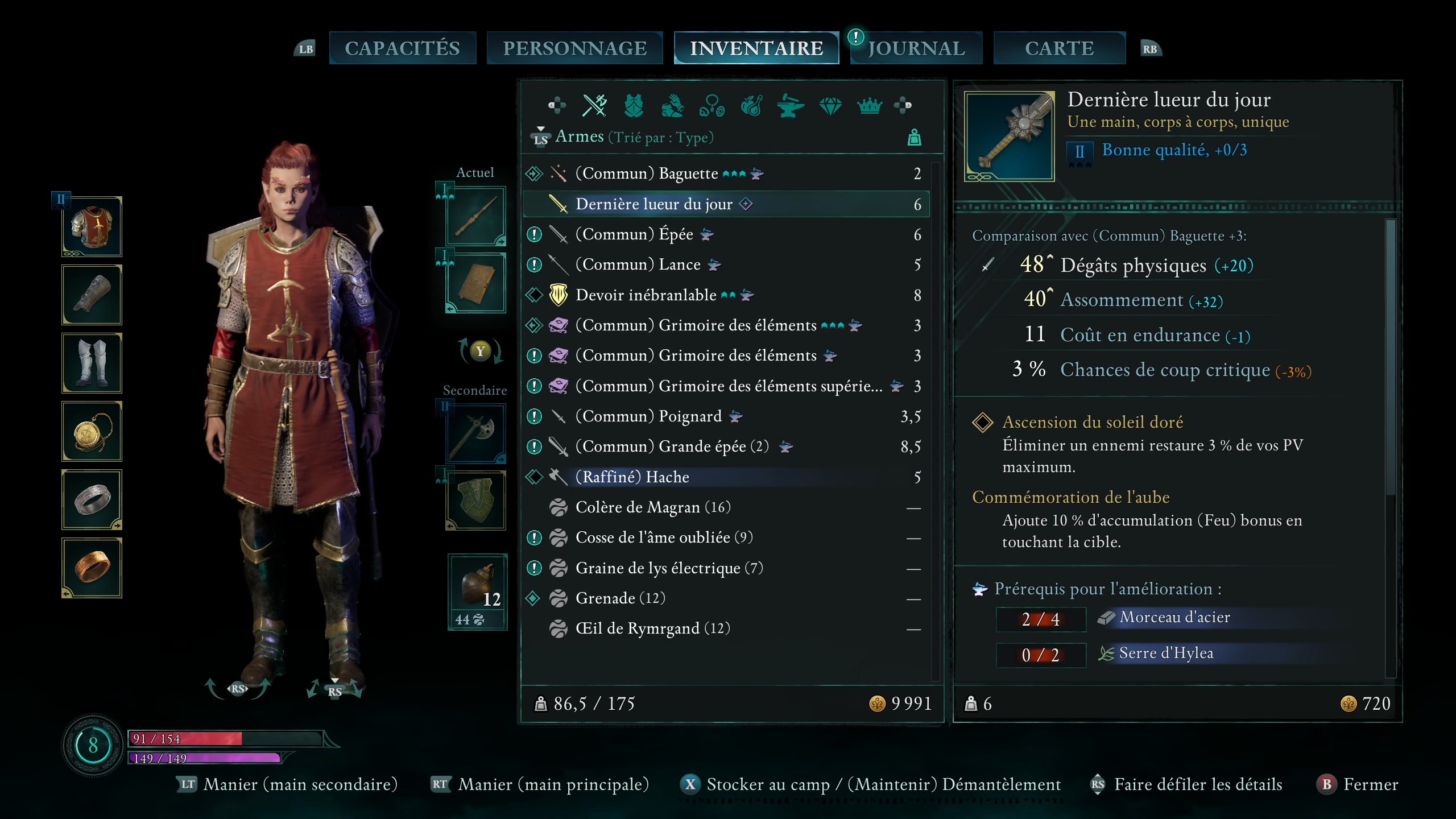 pouvoir obtenir l’épée à une main Dernière lueur du