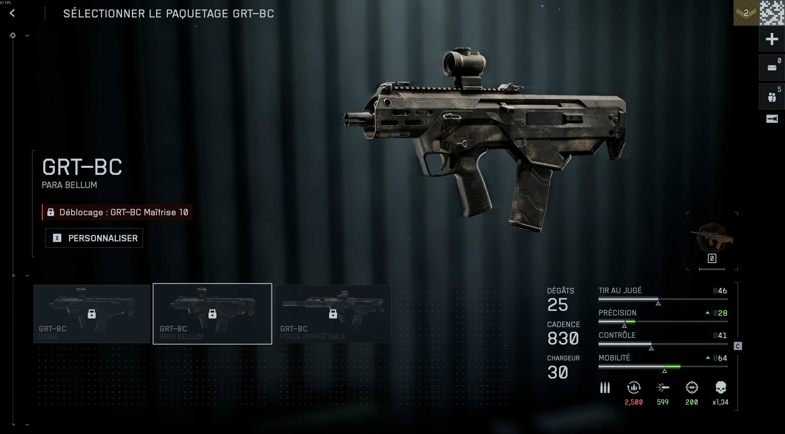 En termes de stats, la GRT-BC envoie du lourd : 830 coups par minute, des dégâts impressionnants, et un recul facile à maîtriser une fois que tu captes le pattern. Sa portée efficace tourne autour de 0 à 30 mètres, ce qui en fait une arme redoutable sur la plupart des cartes longues.