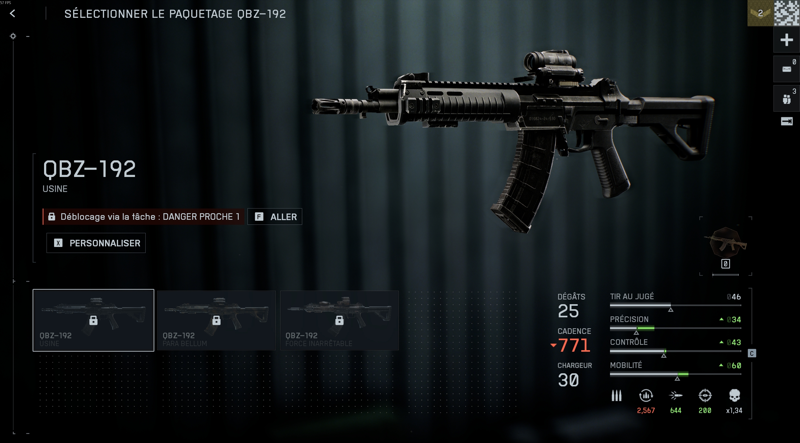 En termes de stats, la QBZ-192 envoie du lourd : 771 coups par minute, des dégâts impressionnants et un recul facile à maîtriser une fois que tu captes le pattern. Sa portée efficace tourne autour de 30 à 60 mètres, ce qui en fait une arme redoutable sur la plupart des cartes.