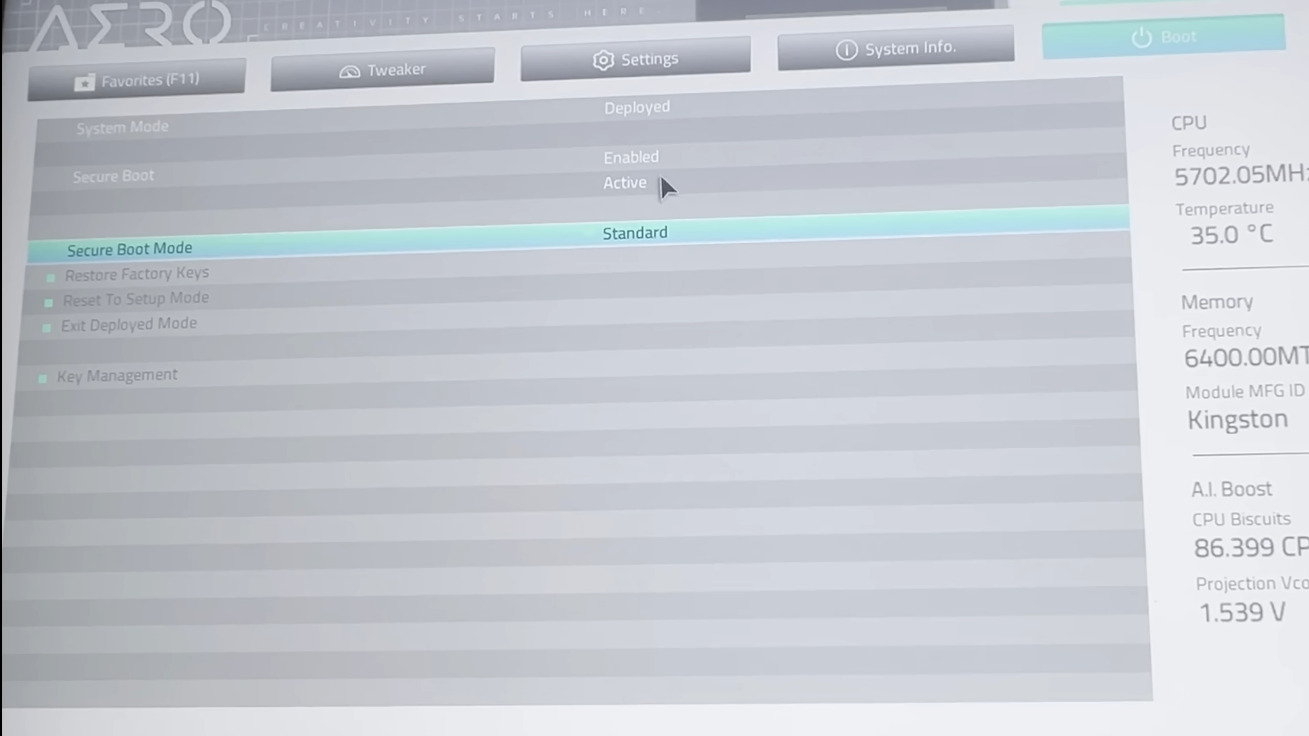 Une fois dans le BIOS, passe en mode avancé si nécessaire. Cherche le menu lié à la sécurité ou au démarrage, généralement appelé Boot, Security, ou parfois Advanced Mode → Secure Boot.