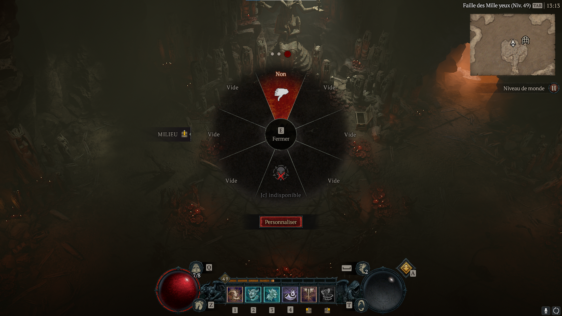 Une fois arrivé au cercle bleu, il vous suffit d’afficher votre roue d’emotes (raccourci « E » par défaut) et de choisir l’émote « Non ». Si cet émote n’est pas dans votre roue,