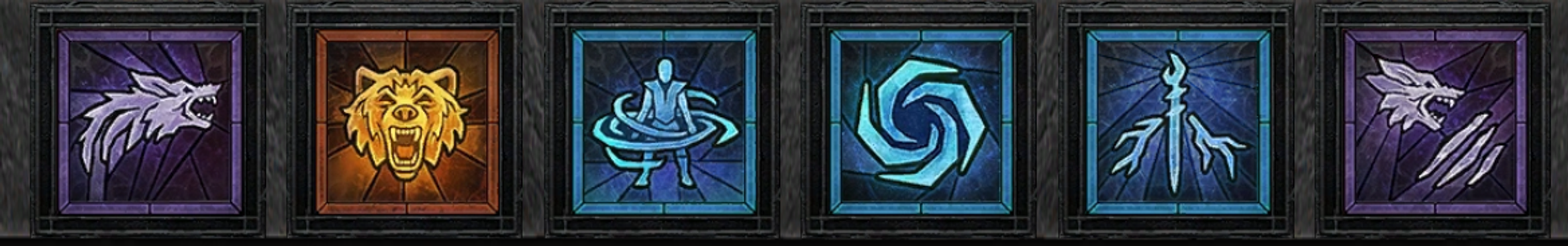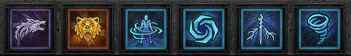 Hurlement sanglant, Rage du grizzly, Armure cyclonique, Ouragan, Vent cisaillant, Orage.