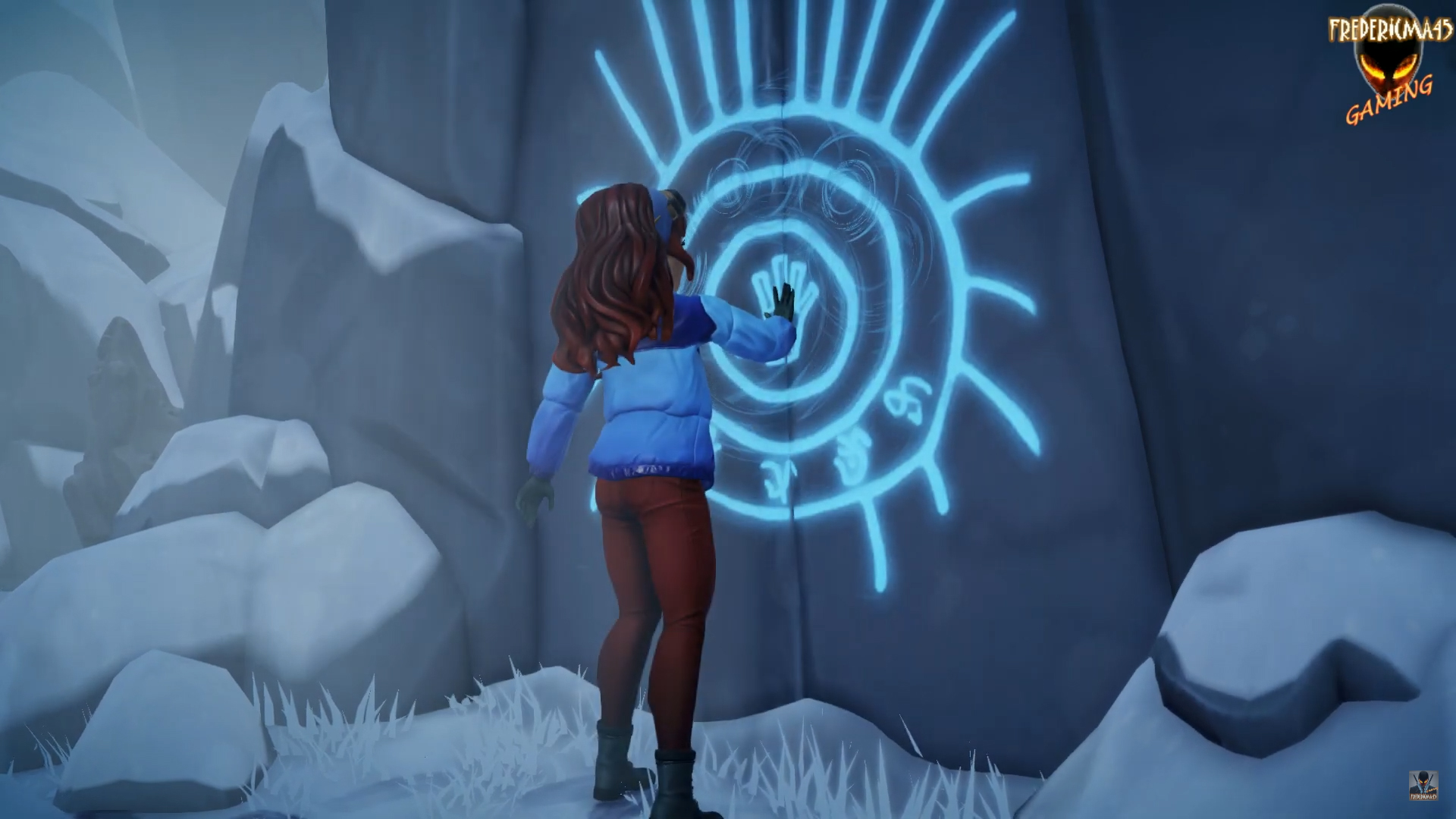 La porte secrète se trouve juste au nord du pilier lumineux dans Frosted Heights, adossée à la falaise. Vous saurez que vous êtes proche de la porte lorsque la tâche « Interagir avec le mur de la