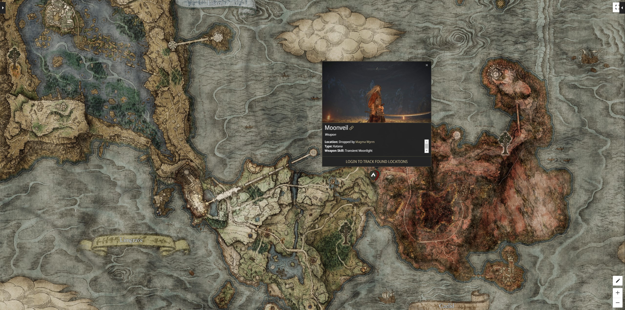 Emplacement du katana Éclipse lunaire sur Elden Ring